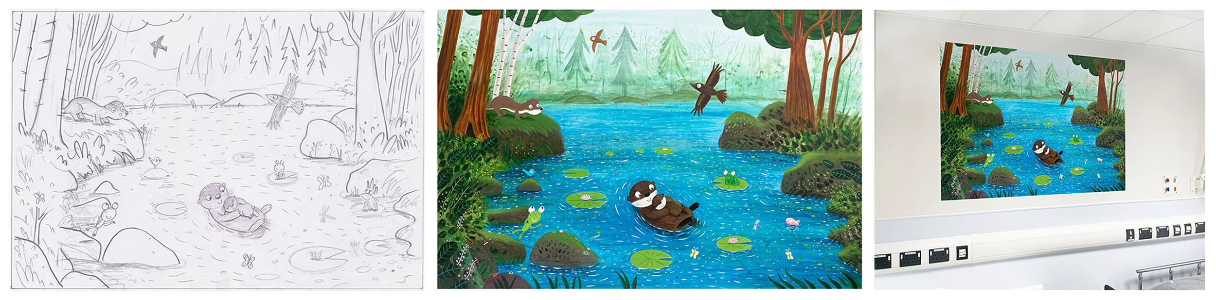 Here are the details of a mural I completed for the Plymouth Hospital UTC department (pictured above). The mural measures 120x80cm.